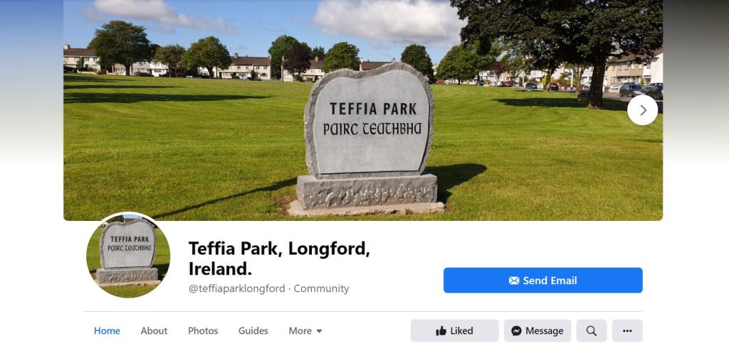 Teffia Park, Longford Town, County Longford, will always been known for its large open green. Also coming up to seventy years of Teffia being in existence, with a the green that many down the years have enjoyed. Family of my own have been brought up in Teffia and still to this day Croghan and McTiernan’s, are still Teffia residents. Teffia has hosted various football teams, also GAA goal posts in its early days and community games were held their also. Teffia could have changed several times, but for the formation of Teffia residents association, they joined together when a car park on the edge side of green was being touted. Talking to couple of residents, mixed feelings about a one way system, that may suit the main issue of narrow roads and many car owners in todays Teffia. The green kept as it always has been, is thanks to these gentlemen who take pride in it, in their own time they help manage the green for everyone to enjoy it as they do. They have a social media dedicated page to Teffia, always updated with images and stories. I have a link below to that page, just click on the image and it will take you to it.