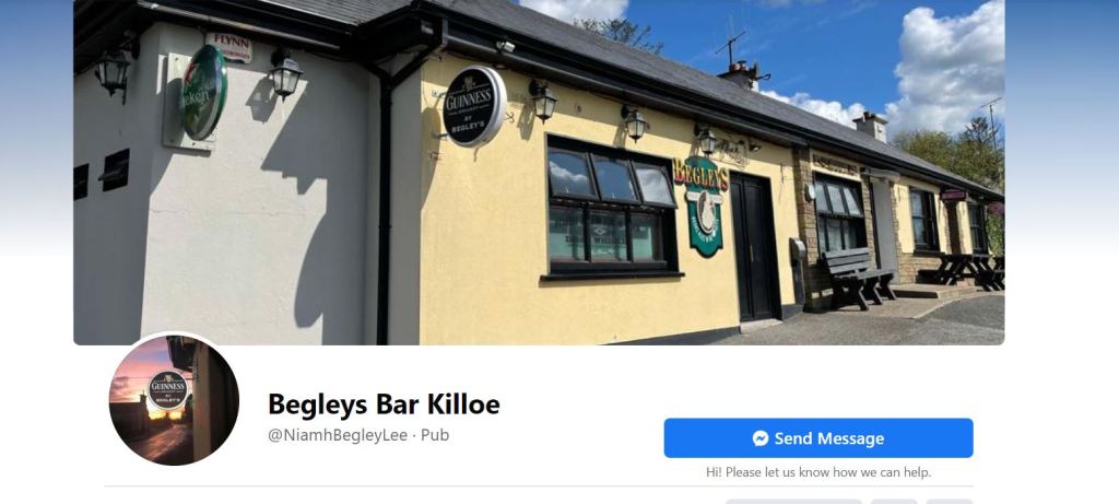 Out and about cycling and I came across Mickey Begley of Begley’s Bar Killoe County Longford, sorting out empty’s from the bar. The man does not know what retirement is, he told me he built a house a bungalow on the site of the bar now back in 1965, and a little bird whispered to me (Councillor Gerard Hagan) that the man built it with blocks he made himself, a well thought of man Mickey is in Killoe he said. Mickey went on to say that his sister Theresa bought it and turned it into a bar before selling back to him twenty years later, he had worked in the Tara Mines previously. the man the myth the legend Micky Begley also starred in a Killoe County championship winning side back in 1959/60. Begley’s Bar Killoe is now ran by Mickey’s daughter Niamh Begley Lee, carrying on the great welcoming tradition of great pints and atmosphere.