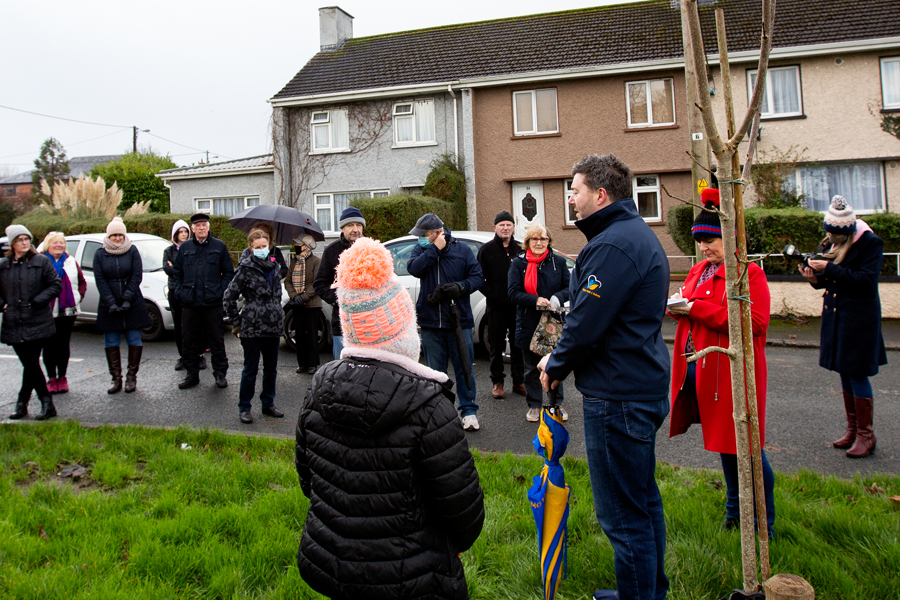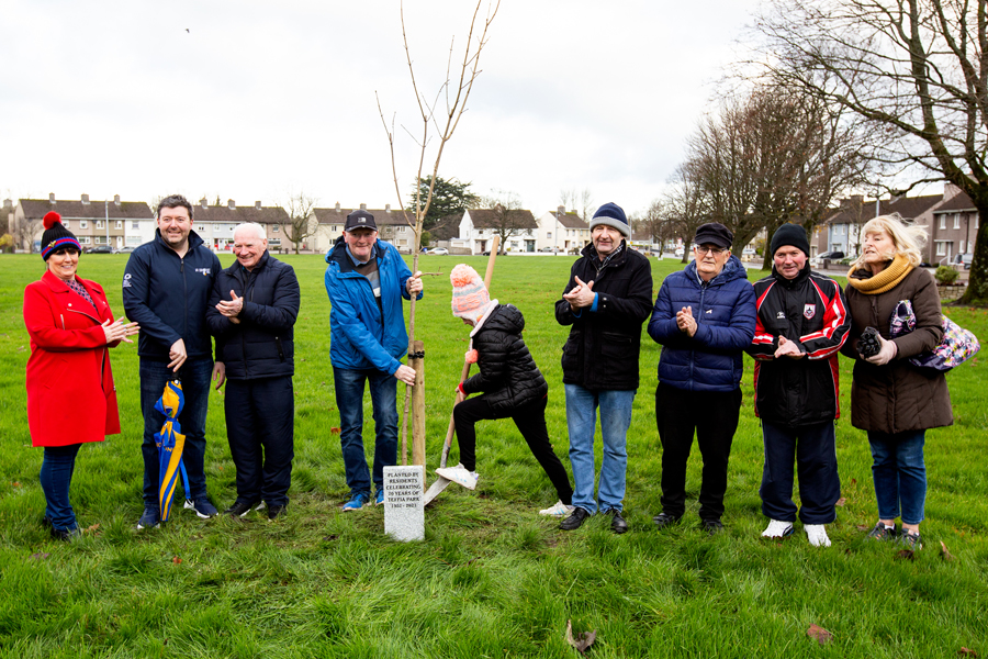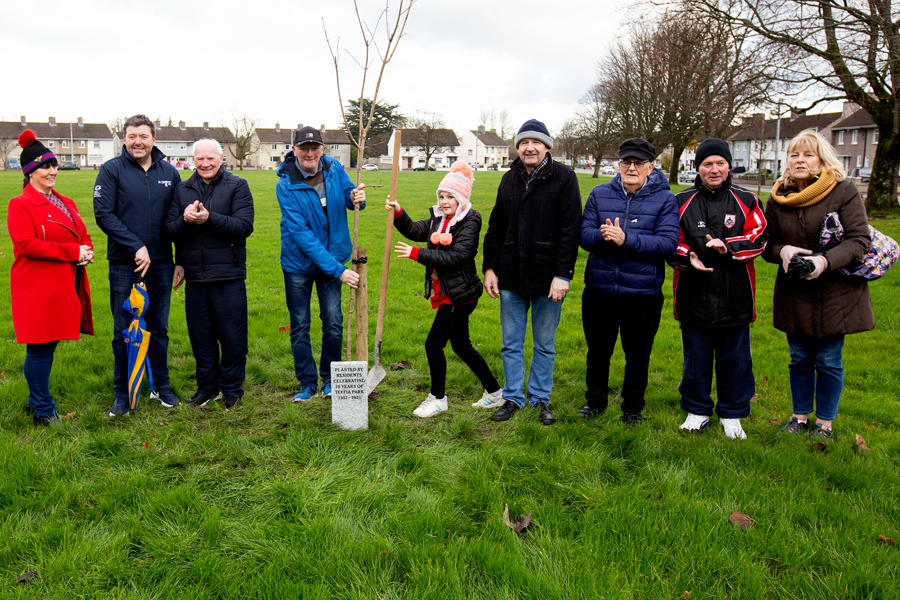 75th anniversary of the Teffia Park estate, Longford, Ireland, 2021. celebrated on Saturday 4th of Dec with a planting of a birch tree to replace one that was felled this year. Young and old were in attendance, Councilor Gerry Warnock spoke highly of the very active residents committee that keep Teffia in such a good state, year in year out.