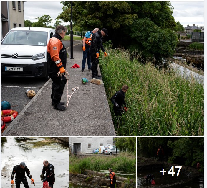 Longford Scuba (search and rescue) & the County Council helped clean up part of the Camlin near town 23rd June 2022. Five years since the last time they had done it due to covid, the scuba divers club is centered in town, but made up of members from other counties. They all came voluntarily to help with the clean up. In the space of them five years, quite a gathering of rubbish of all kinds found its way into the river, bikes, trolleys, manhole cover, table and many household items of furniture and the usual cans. well done to each and everyone of them, and bring on the restoration of this end of town.